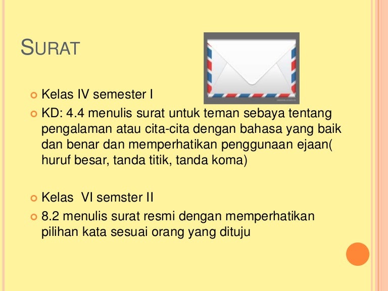 Contoh Surat Resmi Kelas 5 Sd Contoh Surat from 3.bp.blogspot.com Terjemahan frasa surat resmi dari bahasa indonesia ke bahasa inggris dan contoh penggunaan surat resmi dalam kalimat dengan terjemahannya: Selain itu, surat resmi menggunakan padanan kata yang baku dan sesuai ejaan yang disempurnakan dalam bahasa indonesia. Dia harus punya surat resmi untuk naik kapal. Sehingga, dapat dibuat pengertian bahwasanaya. Contohnya ialah surat undangan, surat pemberitahuan, dan surat edaran. Sebuah surat resmi memiliki fungsi untuk memberikan informasi kepada pihak yang dituju dan memiliki kaitan hukum di dalamnya. 2 surat merupakan sarana komunikasi yang memiliki beberapa kelebihan surat merupakan bukti tertulis biaya relatif murah orang dapat berkomunikasi sesuai dengan kehendaknya secara lengkap surat dapat menjangkau berbagai pelosok dunia surat. Bahasa dalam surat pribadi dapat menggunakan bahasa yang baik walaupun secara kaidah bahasa indonesia yang benar kurang tepat.